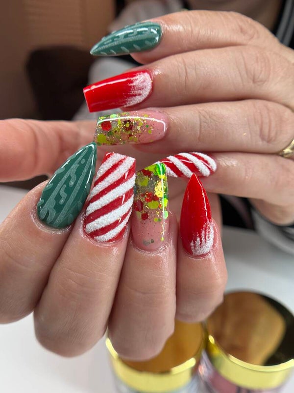A Christmas Collection has 7 colors 1oz in Acrylic Nails, typically features festive, holiday-inspired designs and colors, perfect for celebrating the season. These collections often include a variety of acrylic nail colors, glitters, embellishments, and themes that reflect the spirit of Christmas, from traditional red and green to more whimsical designs.